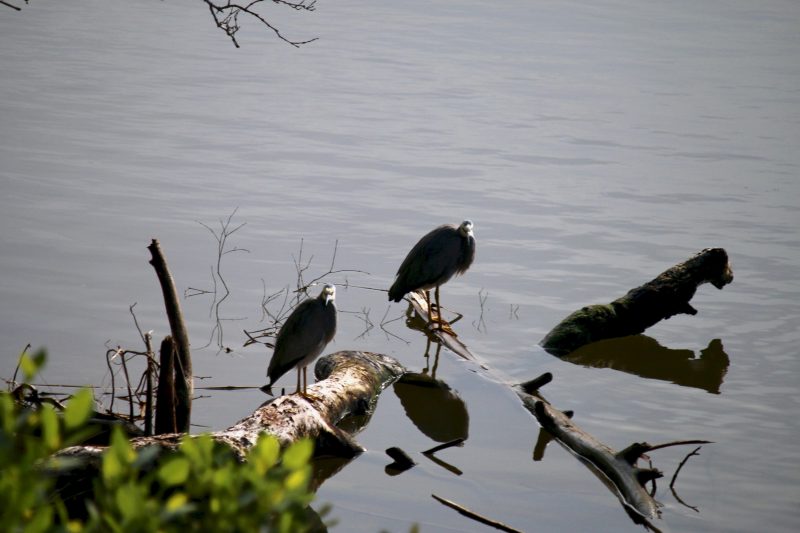 Then I’ll take the new soil inside the newly holed plastic box complete with its potting mix soil out across the mud to the spare, floating pontoon. Because it’s out of range of the beetling cliff behind us, sunshine pours on it through the morning and two hours more in the afternoon.